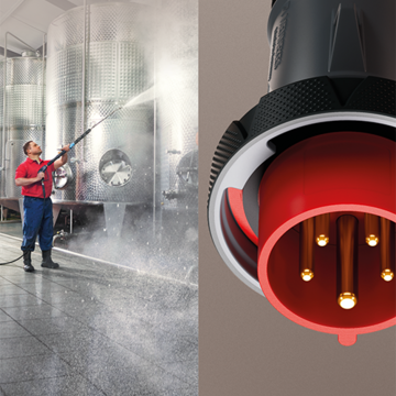 De voor de eisen van de levensmiddelenindustrie geoptimaliseerde contactstoppen en koppelcontactstoppen PowerTOP® Xtra G hebben een extra beschermtule aan de kabelwartel. Deze onderscheidt zich door de volgende punten:
